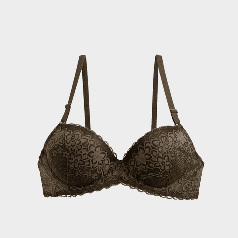 • Họa tiết ren tinh xảo: Lớp ren hoa văn nổi bật, phủ kín cúp ngực và viền áo, tạo nét lãng mạn và gợi cảm.